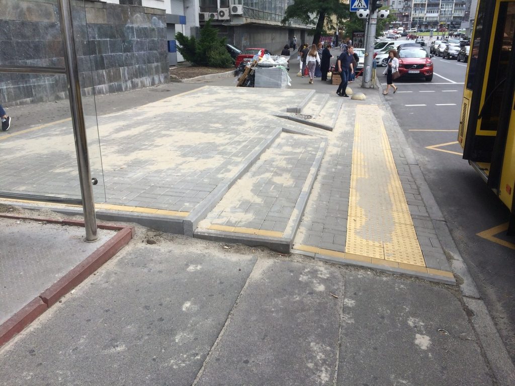 В Киеве разобрали платформу под остановку общественного транспорта на улице Эспланадной. Она имела несколько ступенек и не была доступна для людей с инвалидностью или ограниченной мобильностью.