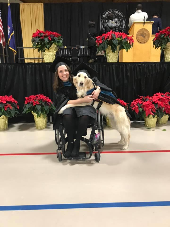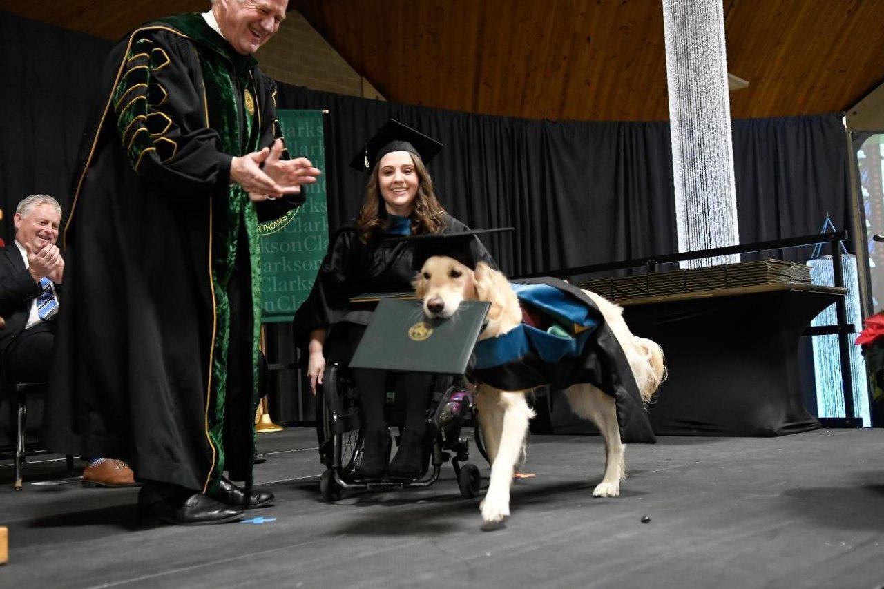 В американском университете Кларксона (штат Нью-Йорк) собака-поводырь Гриффин получил диплом магистра трудотерапии вместе со своей хозяйкой - Бриттани Хоули, пишет HuffPost.