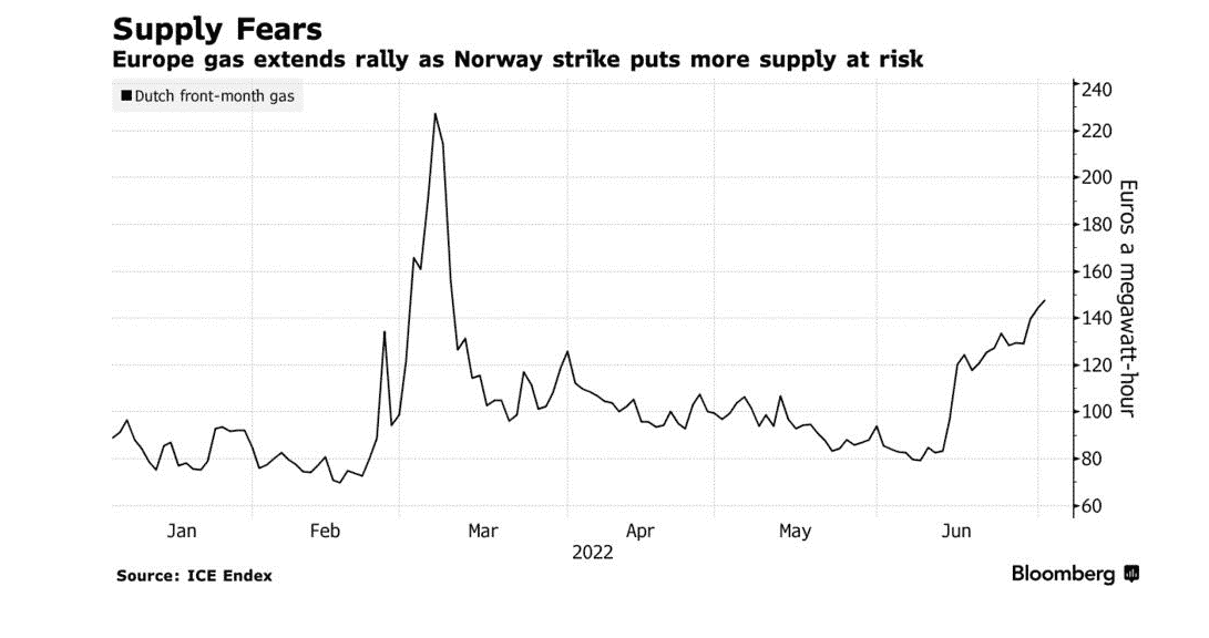 Lederne (норвежская организация менеджеров и руководителей) не сумела договориться с профсоюзами о повышении заработных плат работников добывающих компаний и объявила забастовку. Следовательно, вследствие забастовки, ежедневный экспорт газа из Норвегии упадет на 13%, что создает дополнительные риски предложения сырья на европейском рынке газа.