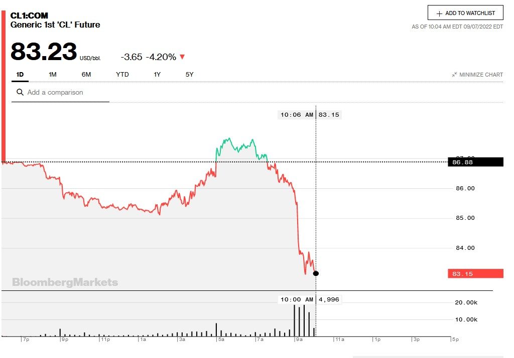 Цены на нефть 7 сентября упали более чем на 3 доллара до самого низкого уровня с начала полномасштабного вторжения россии в Украину.