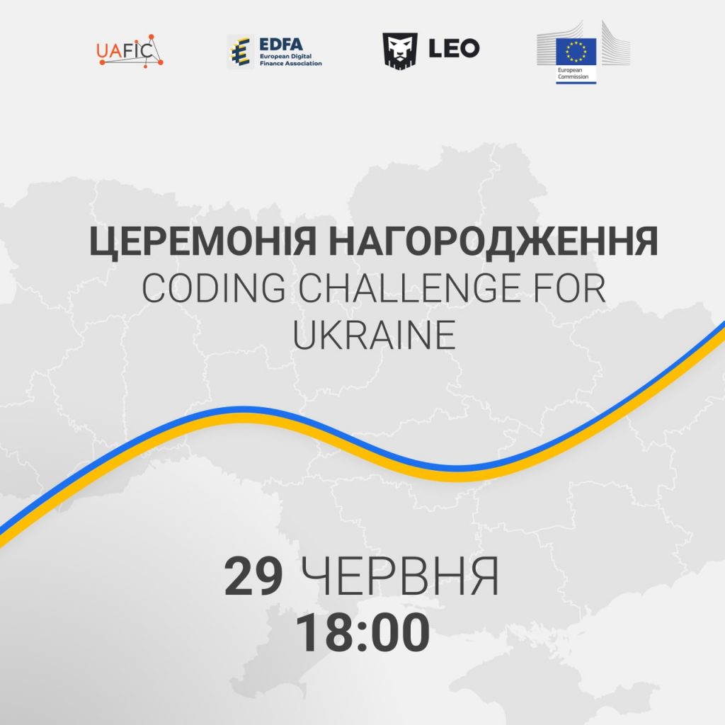 29 июня в гибридном формате состоится награждение победителя хакатона «Coding Challenge for Ukraine». Офлайн часть пройдет в Брюсселе. Напомним, что хакатон организован Украинской ассоциацией финтех и инновационных компаний вместе с Европейской комиссией и Европейской ассоциацией по цифровым финансам.