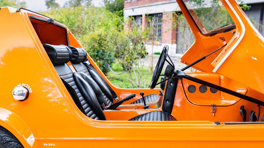 Мотоколяска окрашена в традиционный для модели оранжевый оттенок. В салоне вместо штатной приборной панели появился аналог от Yamaha YZF-R1. Несмотря на отсутствие дверей в традиционном понимании (вместо них — поднимается купол), Bond Bug обладает обогревателем салона.