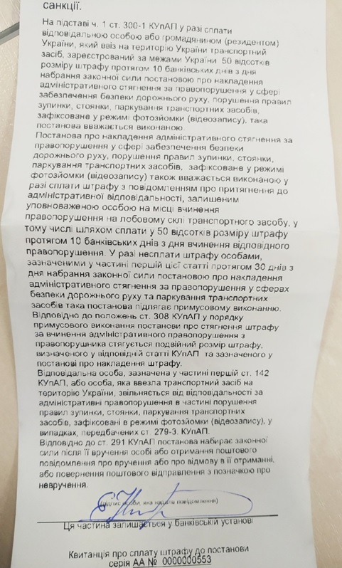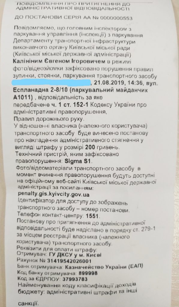 Независимого от того, кто был за рулем во время нарушения, инспекторы выписывают штраф на владельца авто и сообщают, какой пункт правил он нарушил, сумму штрафа, имя инспектора по парковке, который выписал штраф и т. д. Об этом сообщает UBR.