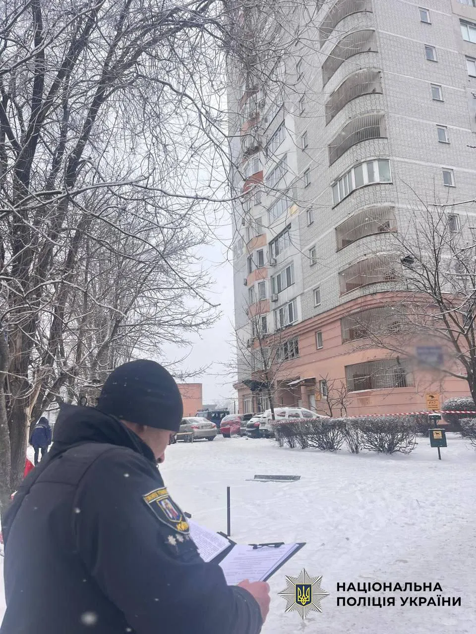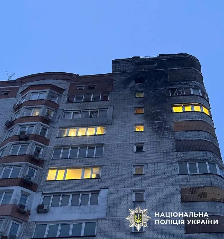 Поліція показала наслідки влучання дрона у 15-поверхівку в Солом’янському районі