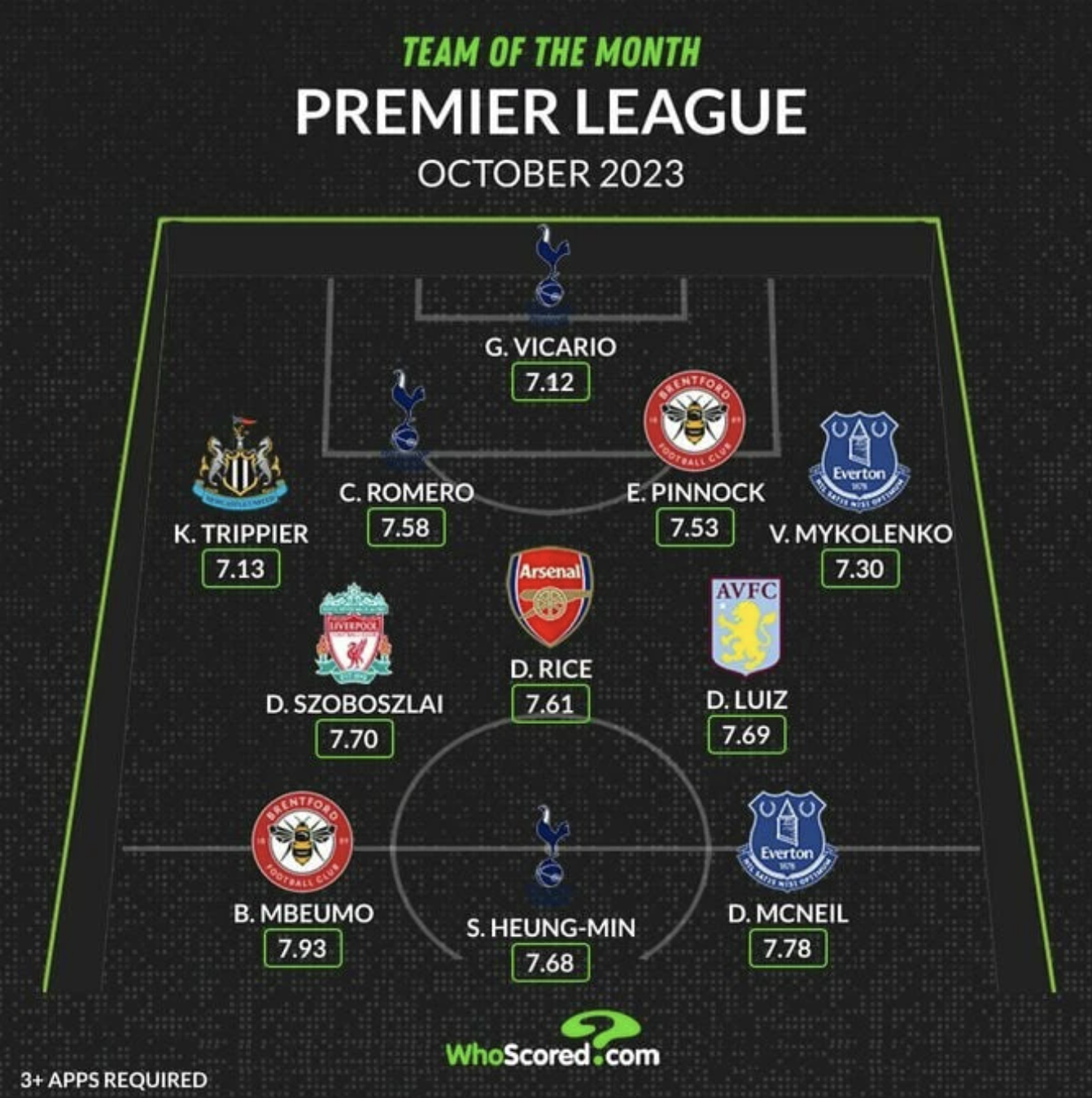Українець Віталій Миколенко потрапив у символічну збірну найкращих футболістів АПЛ у жовтні.