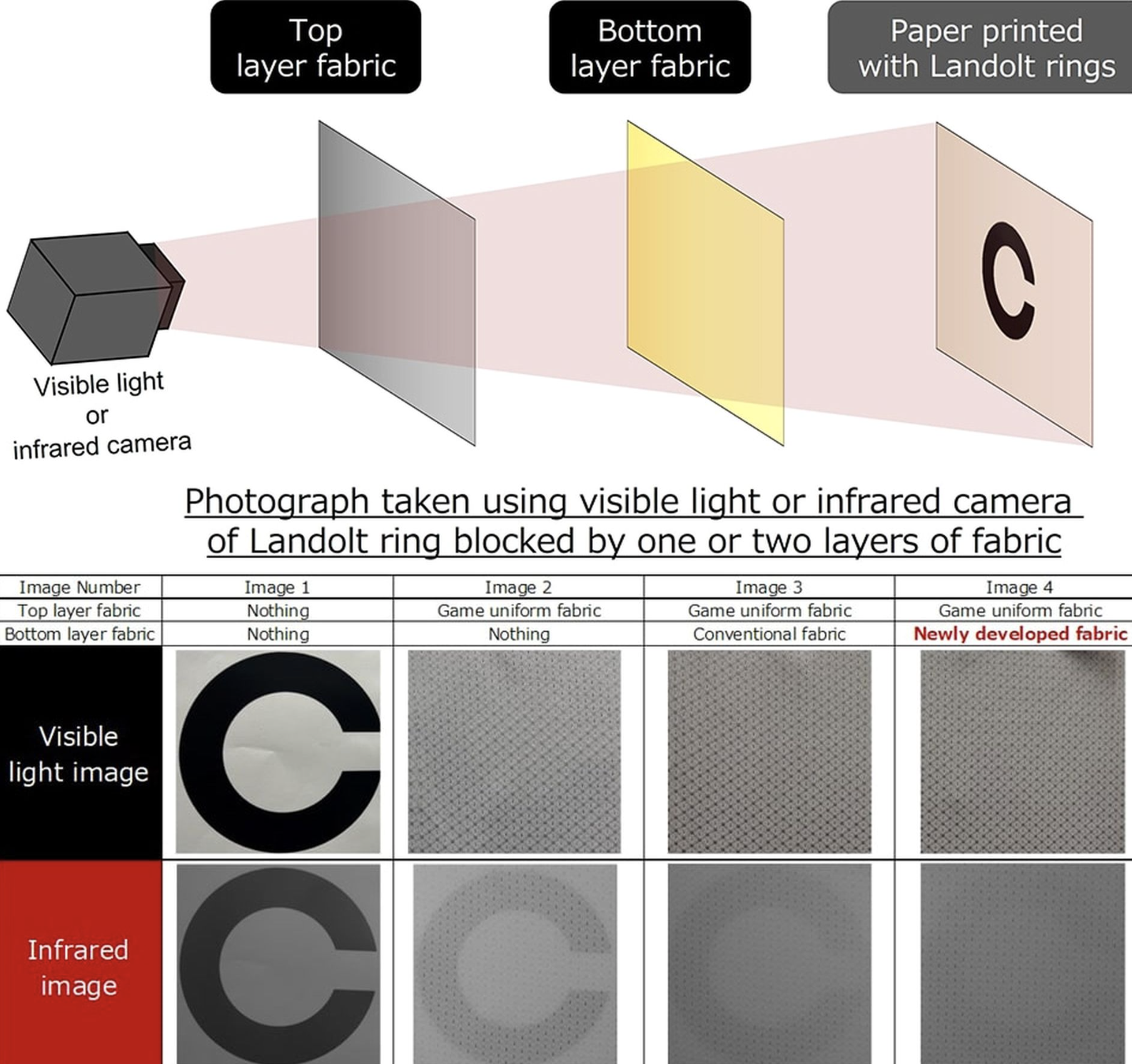 Тому компанії Mizuno, Sumitomo Metal Mining та Kyodo Printing розробили нову тканину, яка захищає спортсменів і водночас може використовуватись у спортивній формі. В експериментах доведено, що ця світлопоглинальна тканина практично не пропускає проміні під час фотографування інфрачервоною камерою. Надалі планується використовувати кілька шарів цієї тканини для створення нової спортивної форми, яка захищатиме спортсменів від відображення їхніх тіл та спідньої білизни за допомогою інфрачервоних технологій.