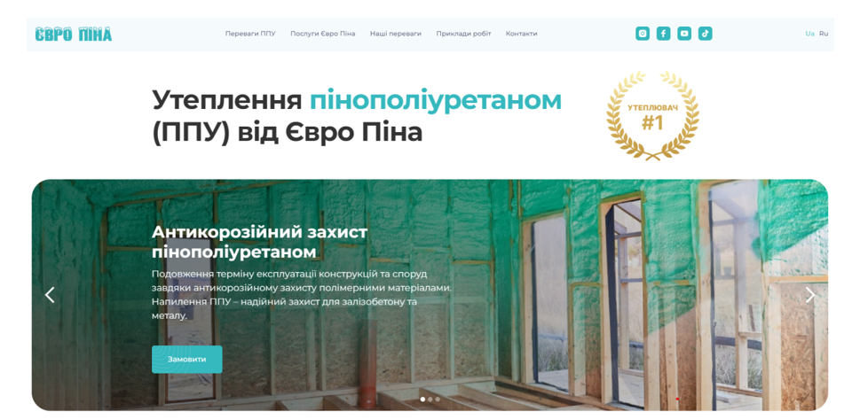 Перше місце в номінації «Кращий сайт на No-Code» здобула компанія AG.Marketing. Команда представила на конкурсі WEB AWARDS UA односторінковий сайт, розроблений для компанії Євро Піна.