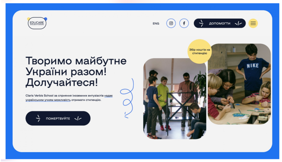Claris Verbis пропонує практично необмежені можливості для дітей з України, які через війну мусили покинути рідну країну та знаходяться за кордоном, для отримання якісної, багатогранної освіти в режимі онлайн. Оптимізований для мобільних пристроїв сайт привертає увагу чистим та сучасним дизайном, якісним контентом, вражаючими графічними ефектами, зручною навігацією.