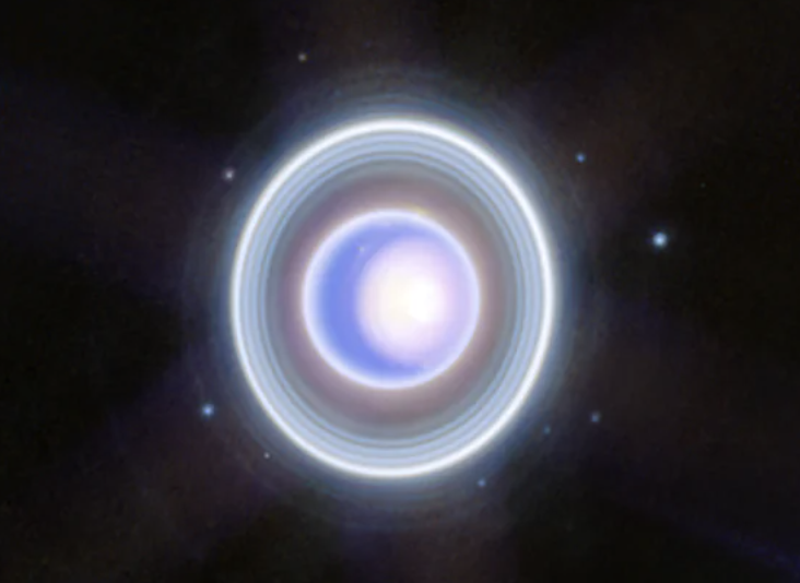 Телескоп зафіксував тьмяні внутрішні та зовнішні кільця Урану, зокрема невловиме кільце Дзета — слабке та дифузне кільце, розташоване найближче до планети. «Джеймс Вебб» також зробив зображення багатьох із 27 відомих супутників планети і навіть зафіксував деякі маленькі супутники в кільцях.