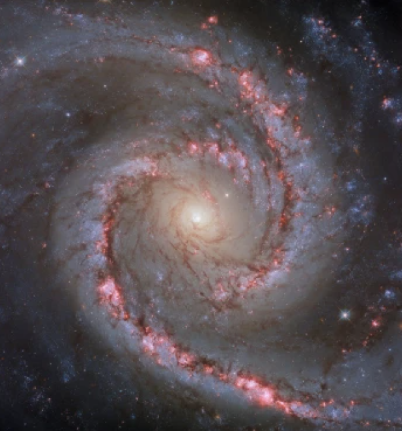 Галактика NGC 1566, яку також називають «Іспанська танцівниця», розташована на відстані близько 60 мільйонів світлових років від Землі в південному сузір'ї Дорадо. Ця нова фотографія телескопа показує галактику та її грандіозний «дизайн».