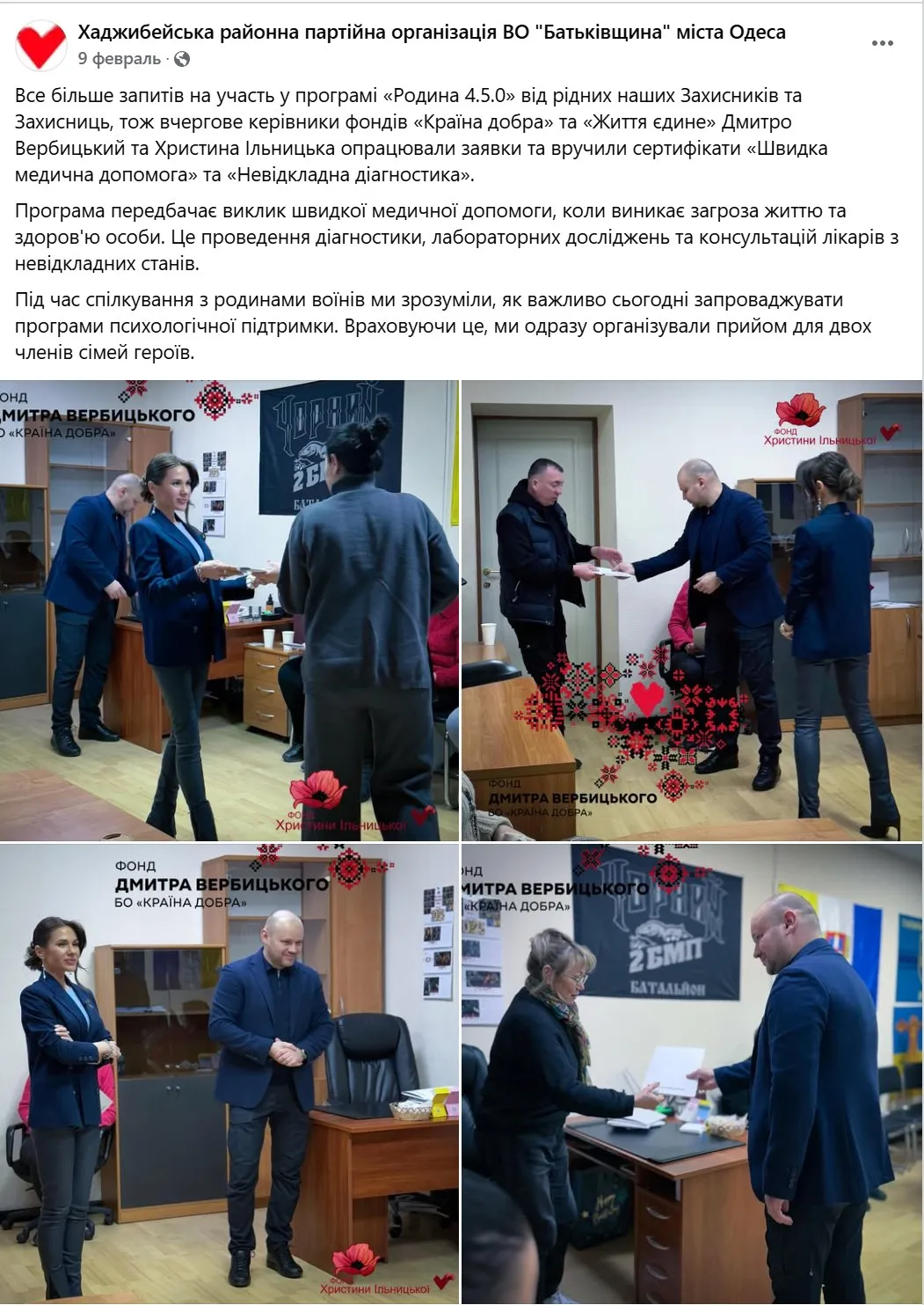 Відомо, що Вербицький в одеську «Батьківщину» вступив не сам — він інтегрував туди всю свою родину: його цивільна дружина Крістіна Ільницька очолила молодіжну організацію партії. Син Ільницької, Нікіта, також бере активну участь у партійних заходах.