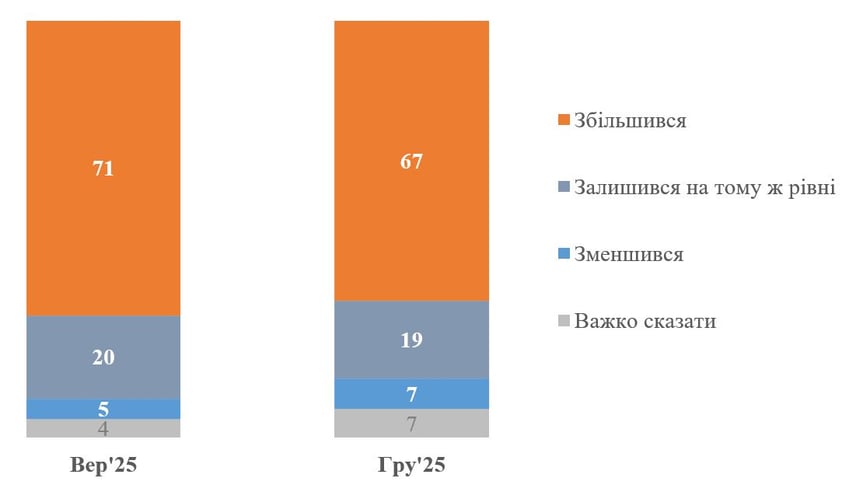 Опитування КМІС проводилось із 26 листопада до 13 грудня 2025 року методом телефонних інтерв’ю. Вибірка включала 1000 громадян України віком від 18 років, які проживають на підконтрольних територіях. До опитування не залучали жителів окупованих територій та тих, хто виїхав за кордон після 24 лютого 2022 року.