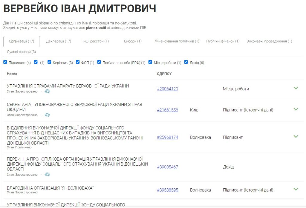 Бойко пише, як засвідчують публічні реєстри, Вервейко в статусі підозрюваного офіційно фінансував виборчу кампанію колишнього депутата Волноваської міської ради Лубінця, який у 2019 році був обраний народним депутатом України.