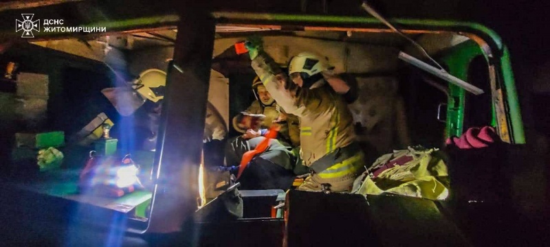 У Житомирській області внаслідок російської атаки ударними безпілотниками по об’єктах енергетичної та транспортної інфраструктури постраждали четверо залізничників. Удар призвів до аварії потяга поблизу Коростеня.