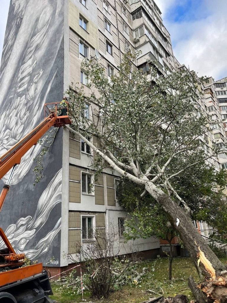 Разом з тим, Київська міська державна адміністрація повідомила, що станом на 14:00 у столиці виявлено 592 пошкоджених або повалених дерева. Над усуненням наслідків негоди працюють 34 одиниці техніки та 208 комунальників.