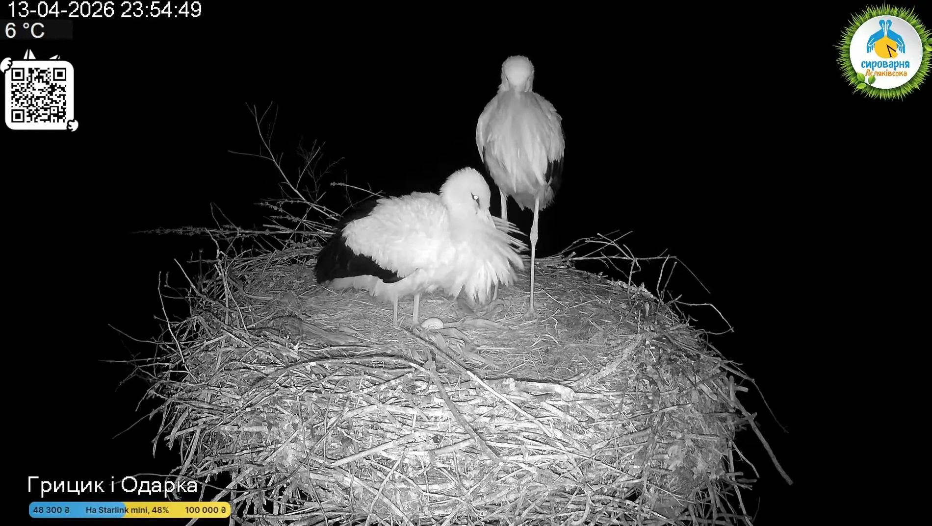 «От і дочекалися сотні глядачів чергової втішної новини в прямому ефірі. Перше яйце почали чекати з 12 квітня, бо досвід спостережень за Одаркою показує, що у 2024 та у 2025 роках перше яйце вона відкладала через сім днів після «пірамід», тобто після спарювання», — розповіла Ірина Саражинська.