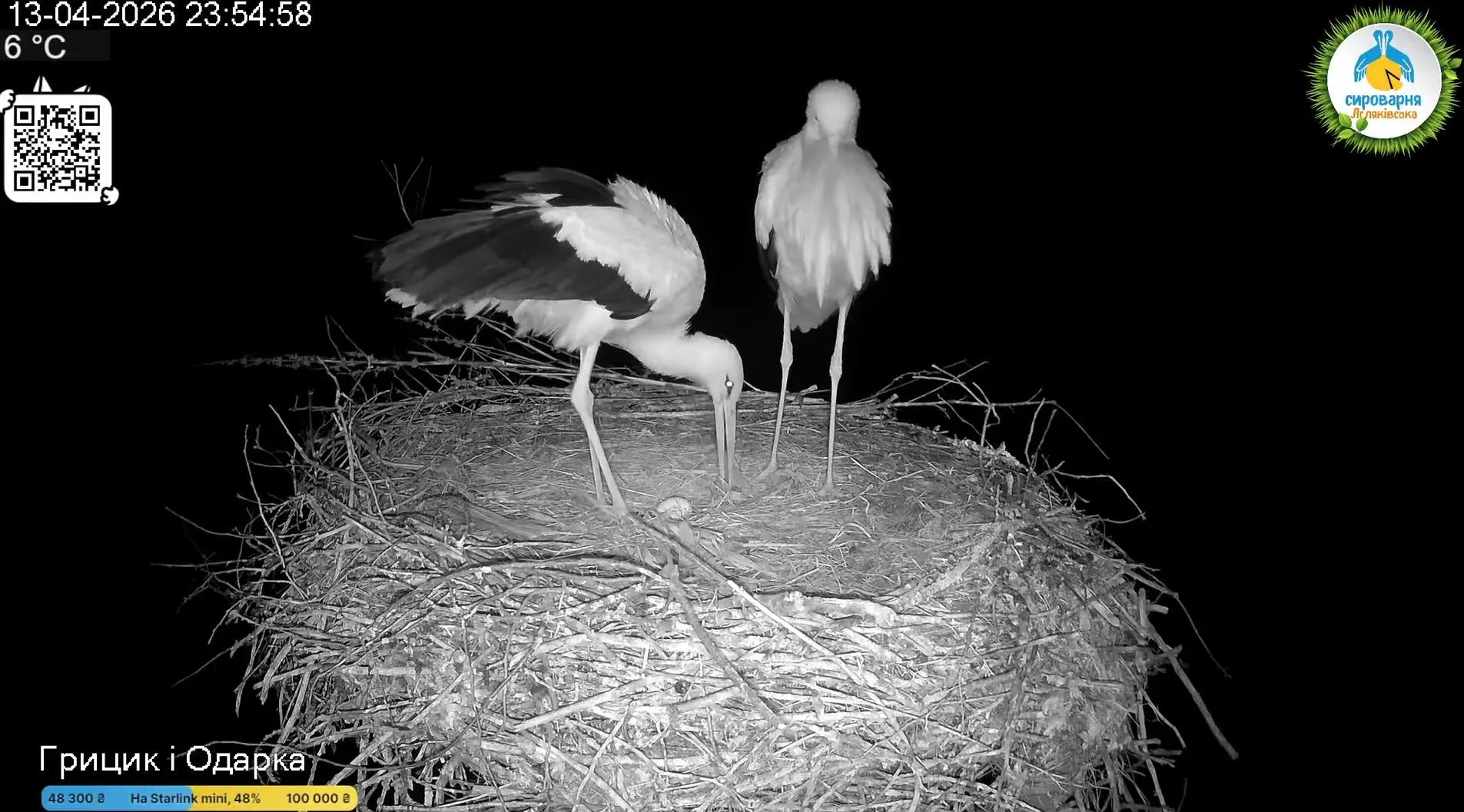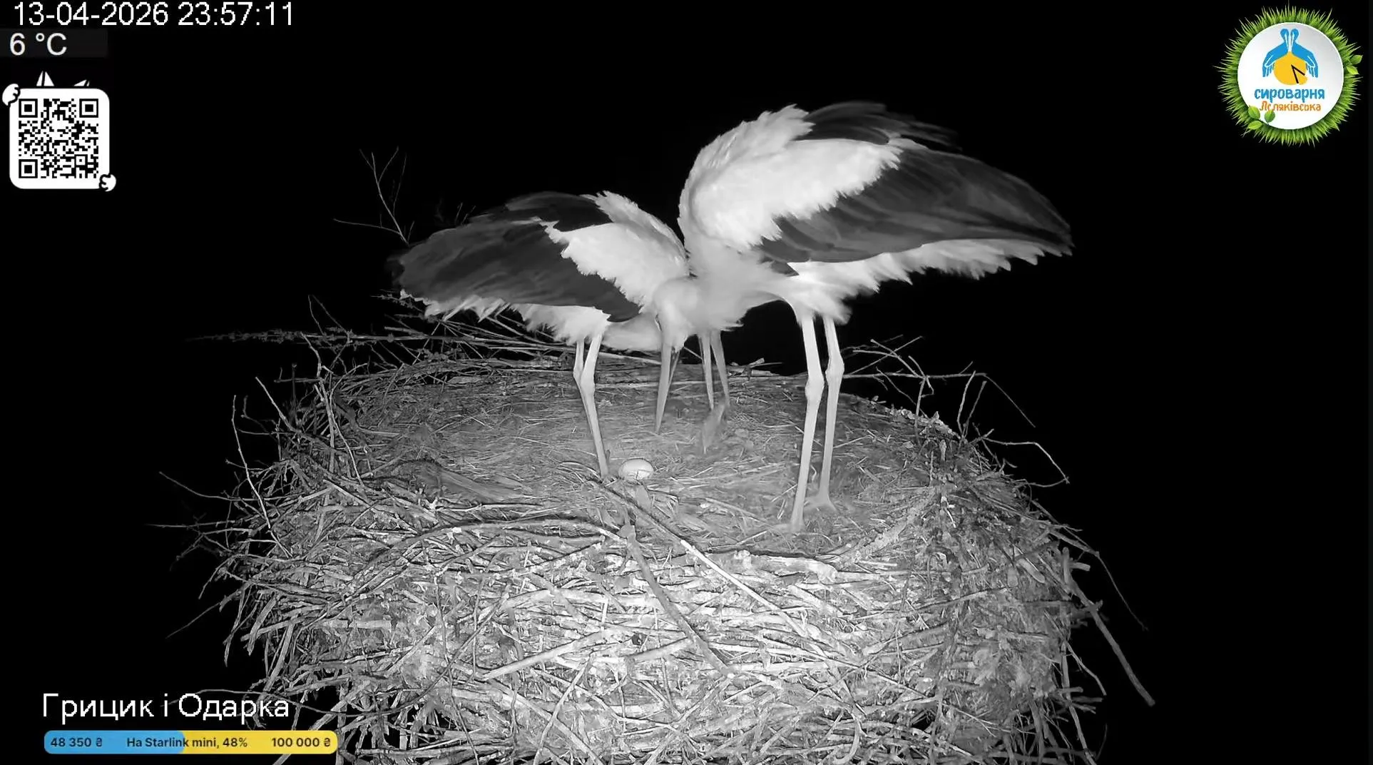 Дослідниця Ірина Саражинська повідомила про появу першого яйця цього сезону, яке птахи відклали в ніч на 13 квітня.