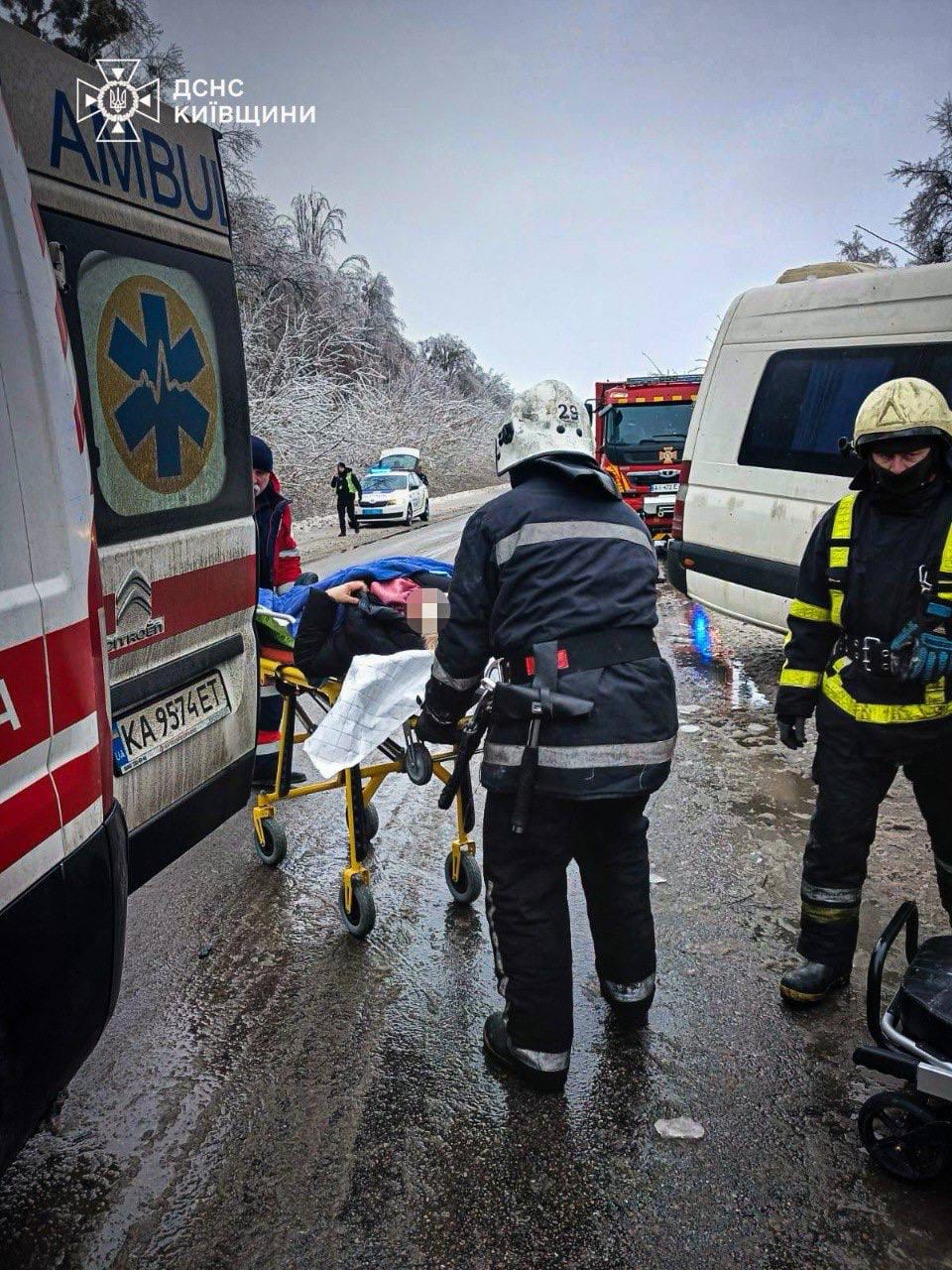 В Обухівському районі Київської області на трасі Київ–Одеса сталася дорожньо-транспортна пригода за участю легкового авто та маршрутного таксі. Двоє людей загинули, ще десятеро отримали травми.
