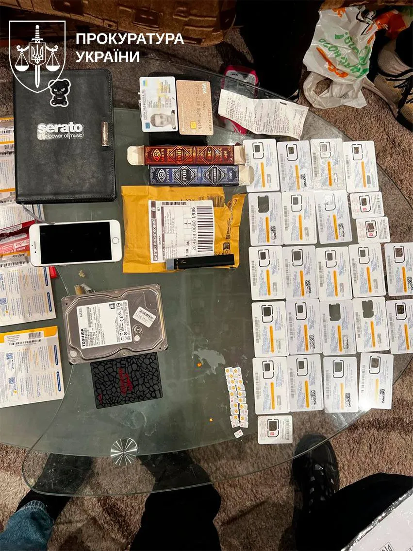 У ході слідчих дій було вилучено комп’ютерну техніку, банківські картки, чорнову документацію, а також обладнання для друку поштових накладних.