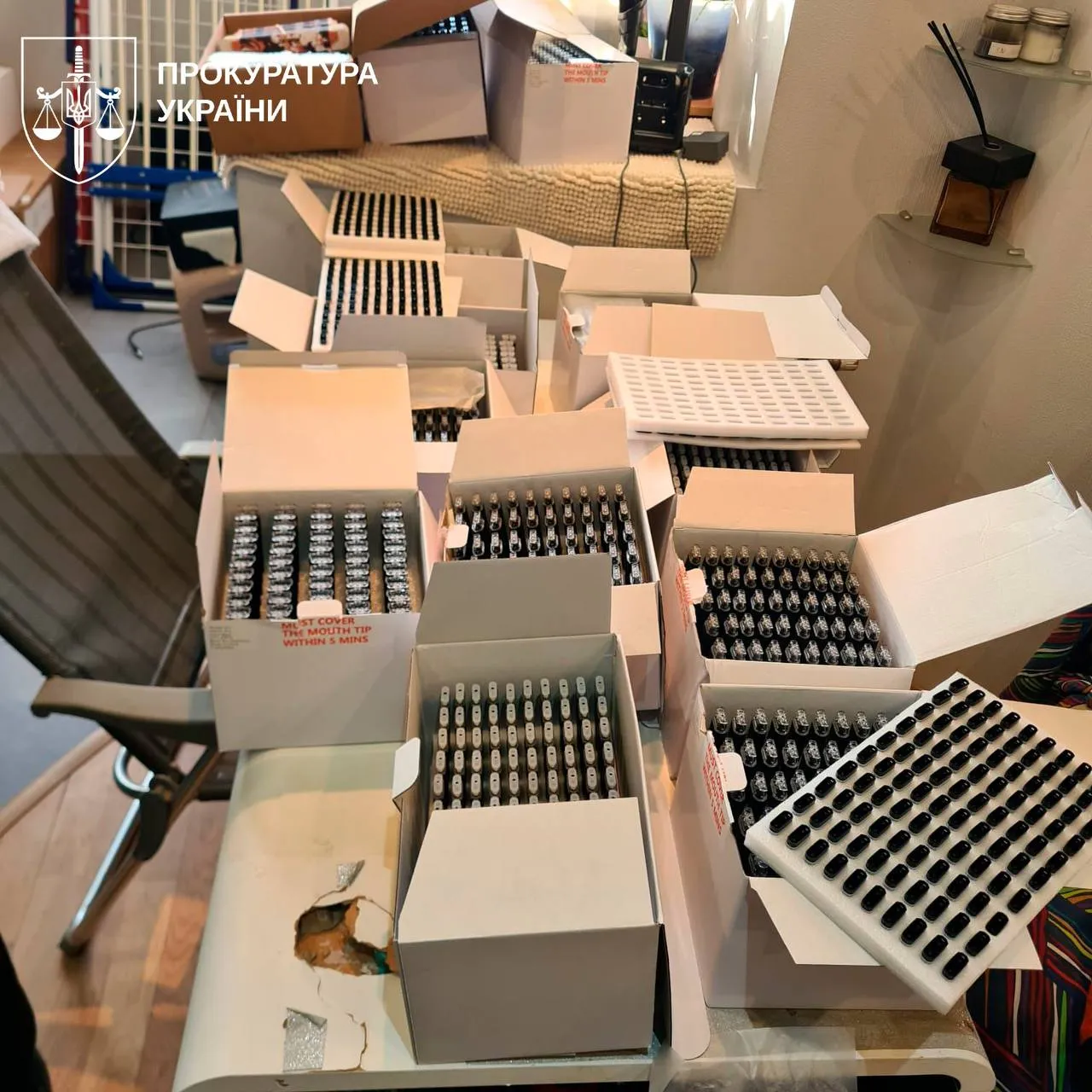 Серед вилученого — понад 700 вейпів, наповнених наркотичною сумішшю, 4 кг екстракту канабісу та 3,5 кг цукерок із вмістом тетрагідроканабінолу.