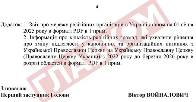 Згідно з офіційною інформацією відомства, фахівці здійснюють систематичний моніторинг для виявлення ознак афілійованості громад із Російською православною церквою.