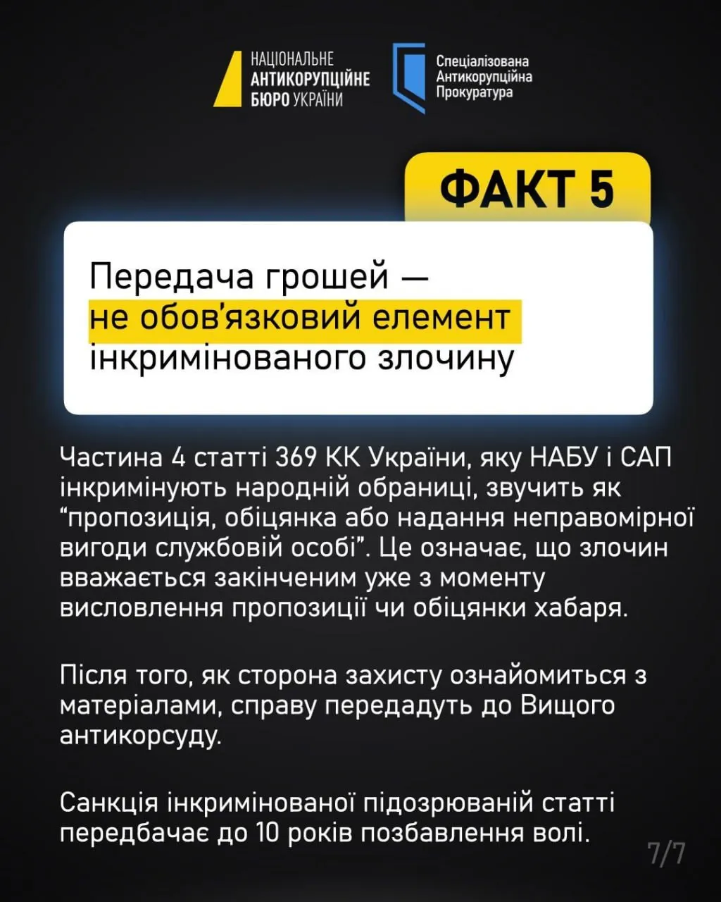 Після того, як сторона захисту ознайомиться з матеріалами, справу передадуть до Вищого антикорсуду. Тимошенко загрожує за ч. 4 ст. 369 до 10 років тюрми.