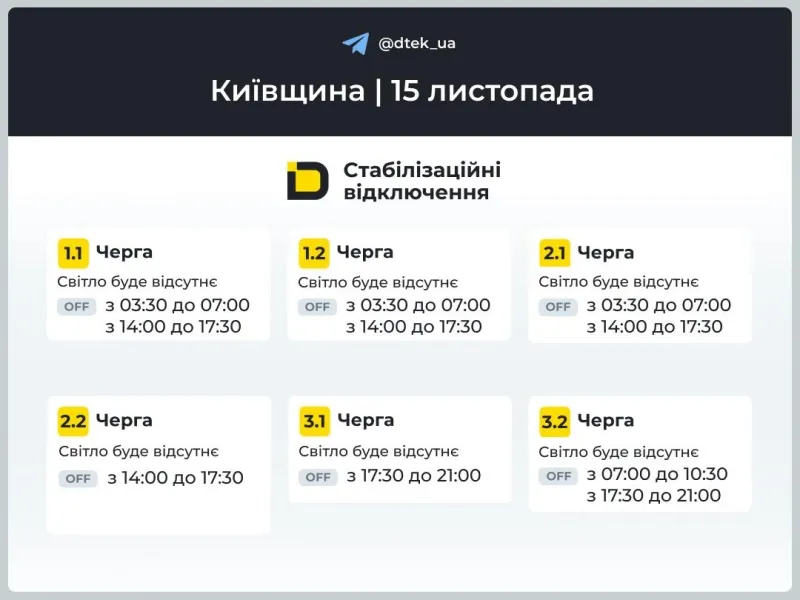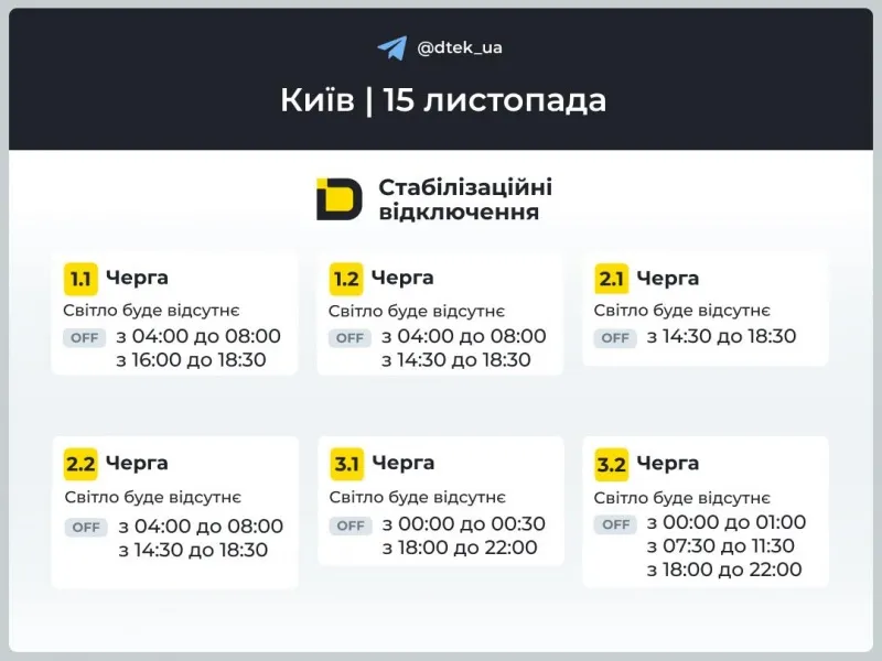 Сьогодні, 15 листопада, діятимуть графіки погодинних відключень. Відповідно до команди НЕК "Укренерго":