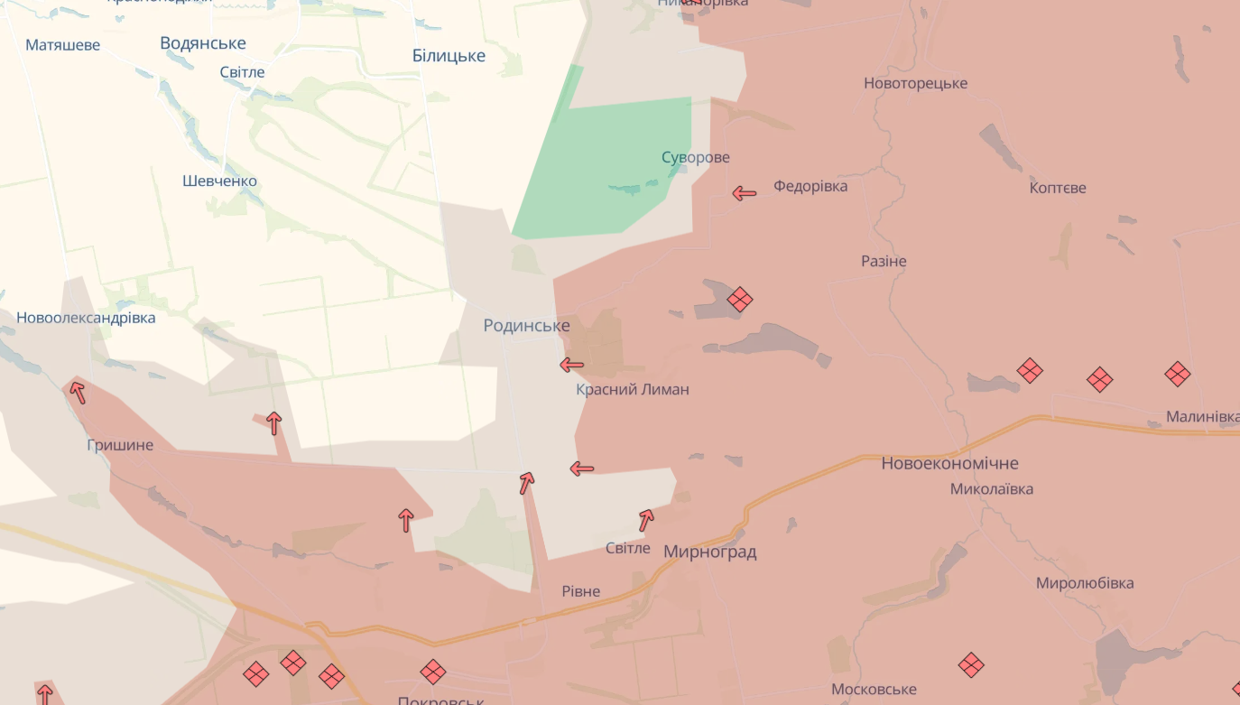 Про це повідомляють аналітики DeepState, зазначаючи зміни на мапі бойових дій у районах Піщаного та Родинського.
