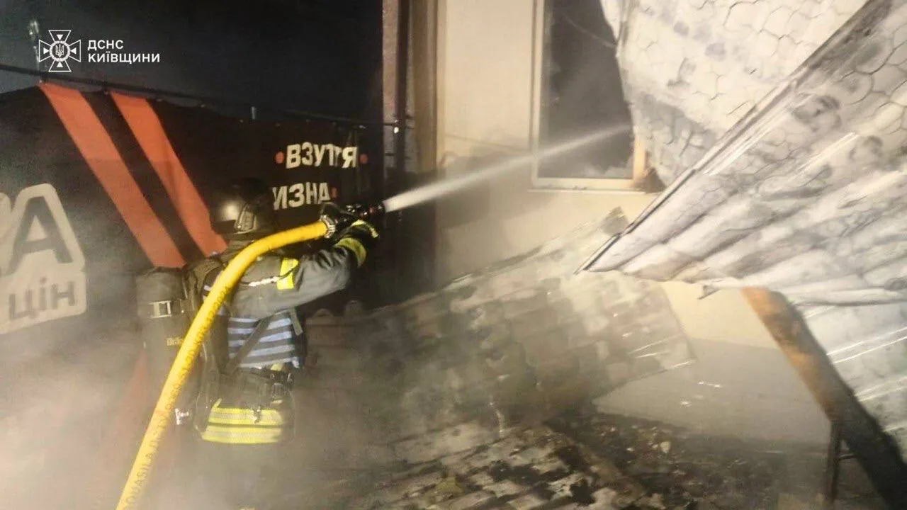 За даними рятувальників, цієї ночі у Броварах уламки ворожого безпілотника впали на двоповерхову будівлю мінімаркету. Внаслідок цього на місці сталася пожежа та часткове руйнування споруди.