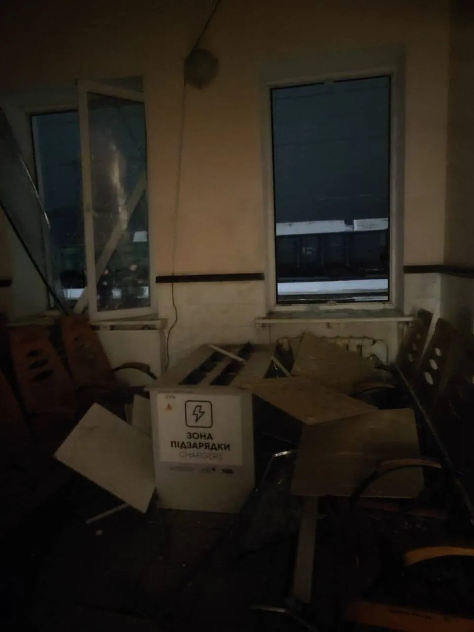 Найбільше постраждала зала очікування — вибухова хвиля повибивала вікна й двері та пошкодила меблі. На фото, які оприлюднили в «Укрзалізниці», помітні перекинуті лавки й зруйновані елементи всередині приміщення.