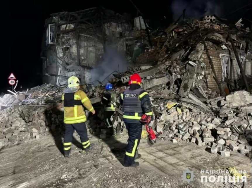 На місцях влучань всю ніч працюють ДСНС та поліція, триває пошуково-рятувальна операція, поліцейські документують наслідки російських ударів.