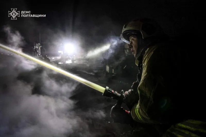 У Полтавській області внаслідок ударів по промислових об’єктах спалахнули масштабні пожежі, які вдалося оперативно ліквідувати силами ДСНС.