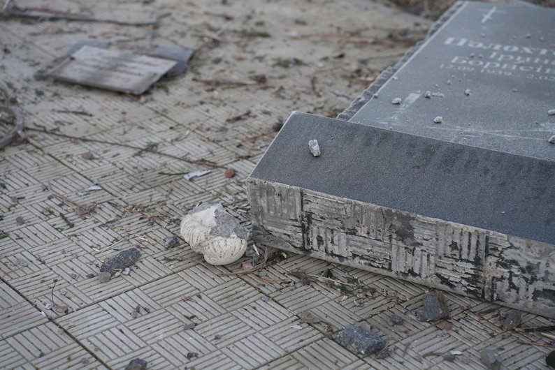 За інформацією мера міста Анатолія Бондаренка, внаслідок удару понівечено понад 20 могил цивільних мешканців та серйозно пошкоджено Алею Героїв, де поховані захисники України. Міський голова підкреслив, що такі дії агресора є цілеспрямованим ударом по пам’яті громади та демонструють повну відсутність людяності у діях ворога в день великого релігійного свята.