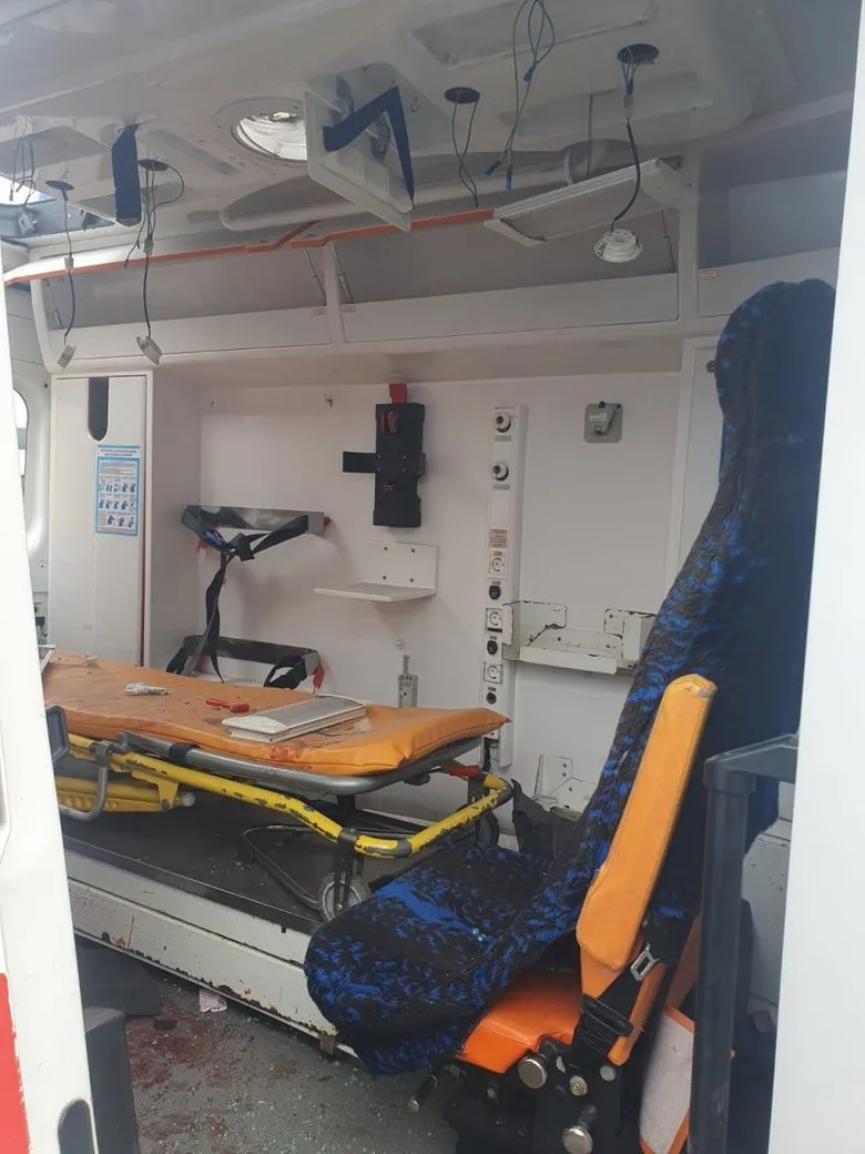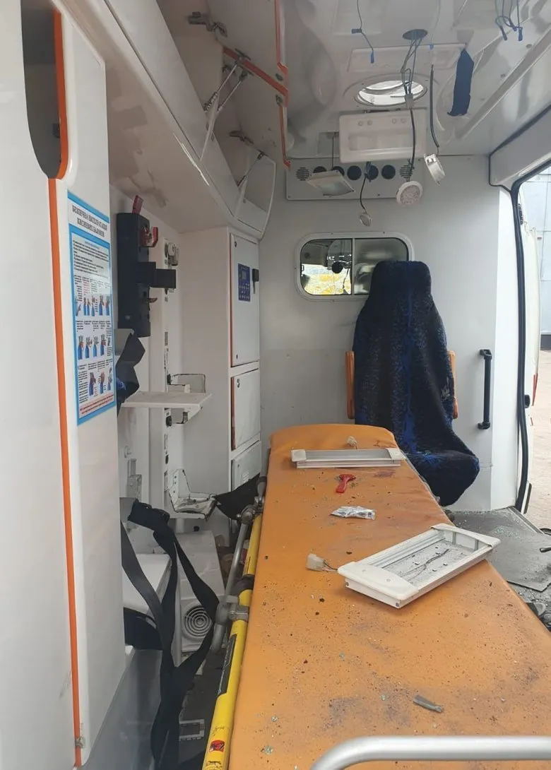 Унаслідок атаки повністю пошкоджено карету швидкої допомоги та знищено медичне обладнання.