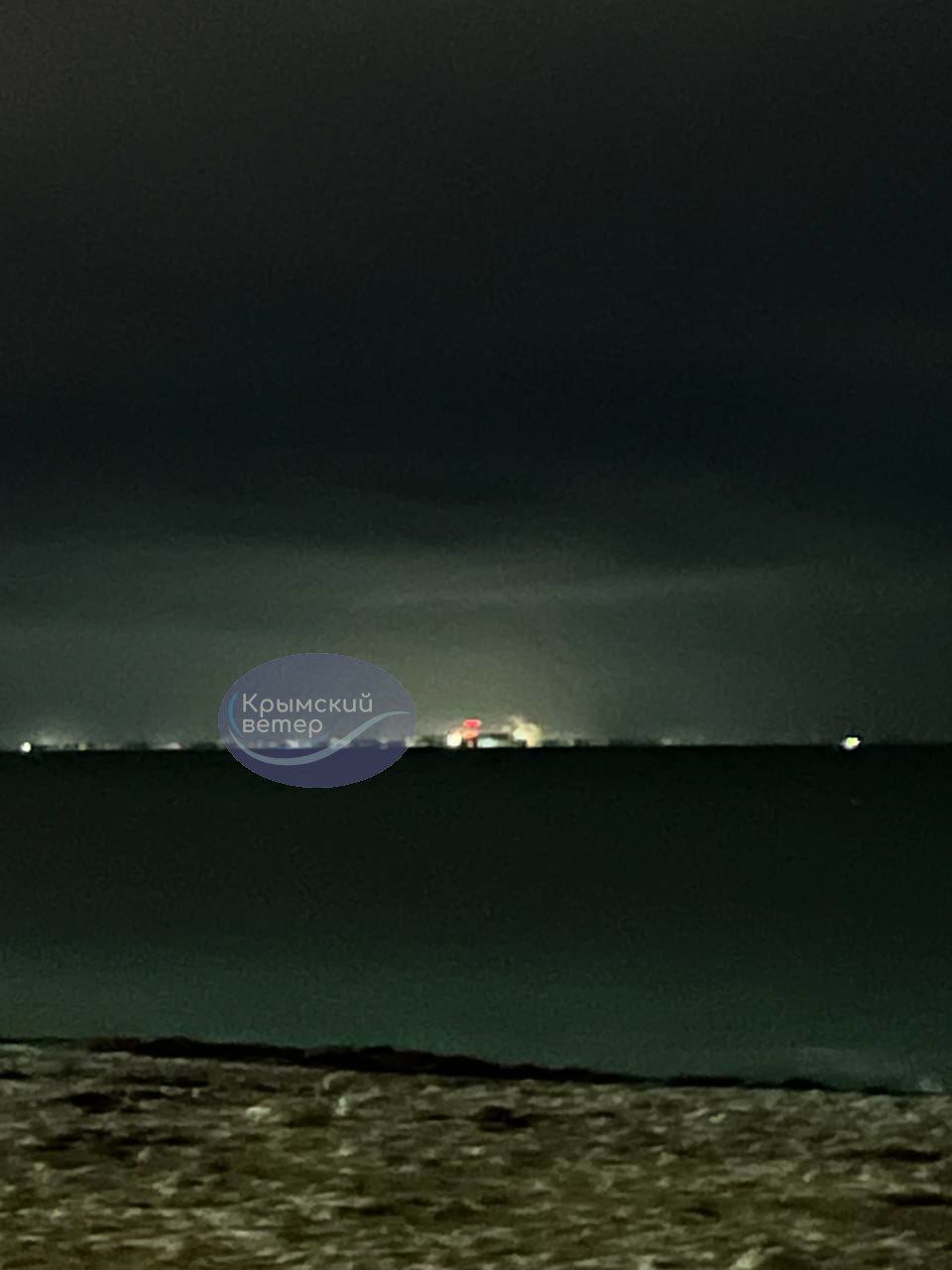 Telegram-канал «Крымский ветер» опублікував фото вибуху, яке надіслали очевидці. Вони зазначають, що це, можливо, горить Сакська ТЕЦ.