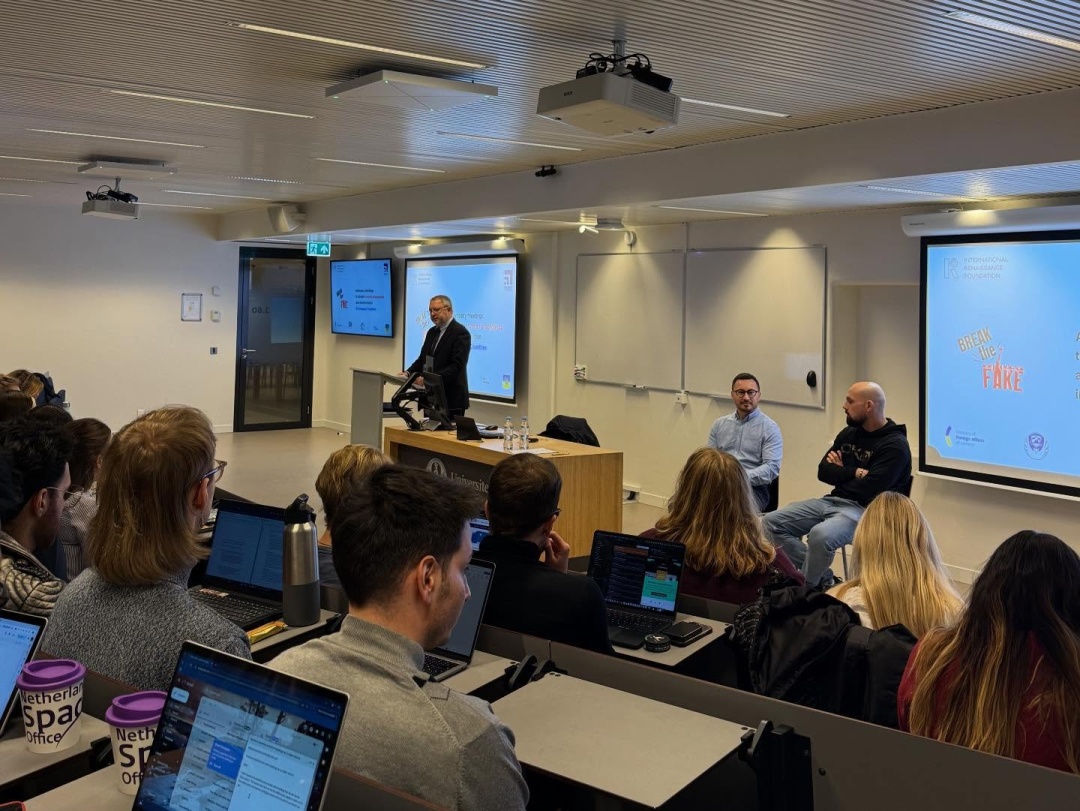 28 листопада презентація проєкту Break the Fake відбулася у Лейденському університеті. Подія, організована IRSA Leiden та відкрита Послом Андрієм Костіним, зібрала понад 60 студентів.