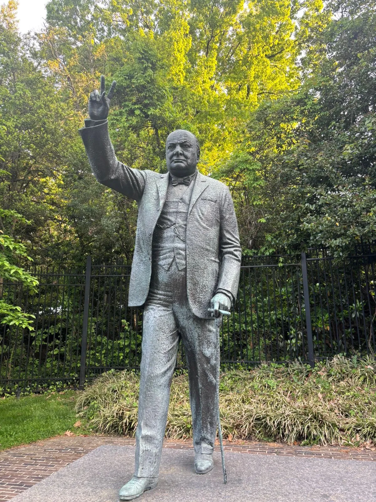 «Залишаючи посольство, обмінялася поглядами з Вінстоном Черчиллем. Він пророчо показував знак «мир»», — зазначила учасниця заходу.