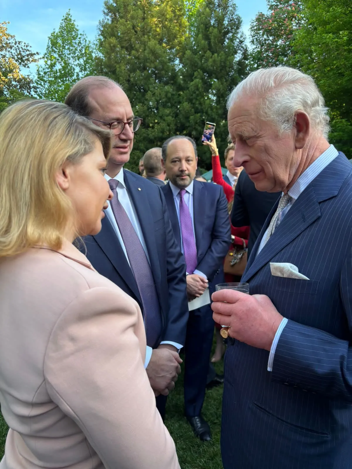 Під час офіційного заходу, організованого послом Сполученого Королівства у США, відбулася зустріч із британським королівським подружжям — королем Чарльзом III та королевою Каміллою. Серед почесних гостей монарх окремо привітав посла України та висловив підтримку українському народу.