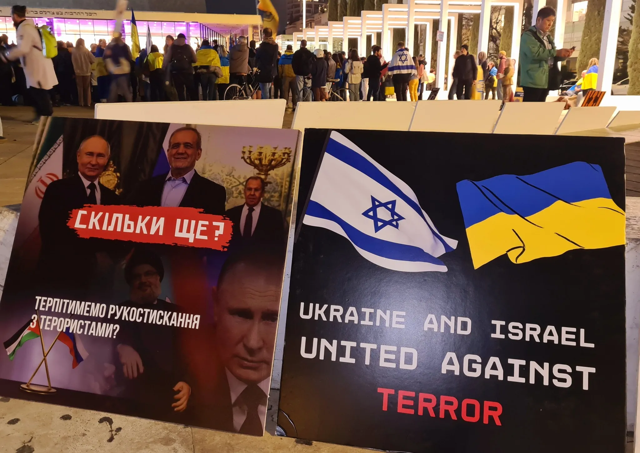 «Учасники заходу запалили свічки пам'яті на площі Габіма у центрі Тель-Авіва, вшанувавши хвилиною мовчання жертв агресії та на знак солідарності між народами України та Ізраїлю», — розповів UA.News місцевий журналіст Шимон Бріман.
