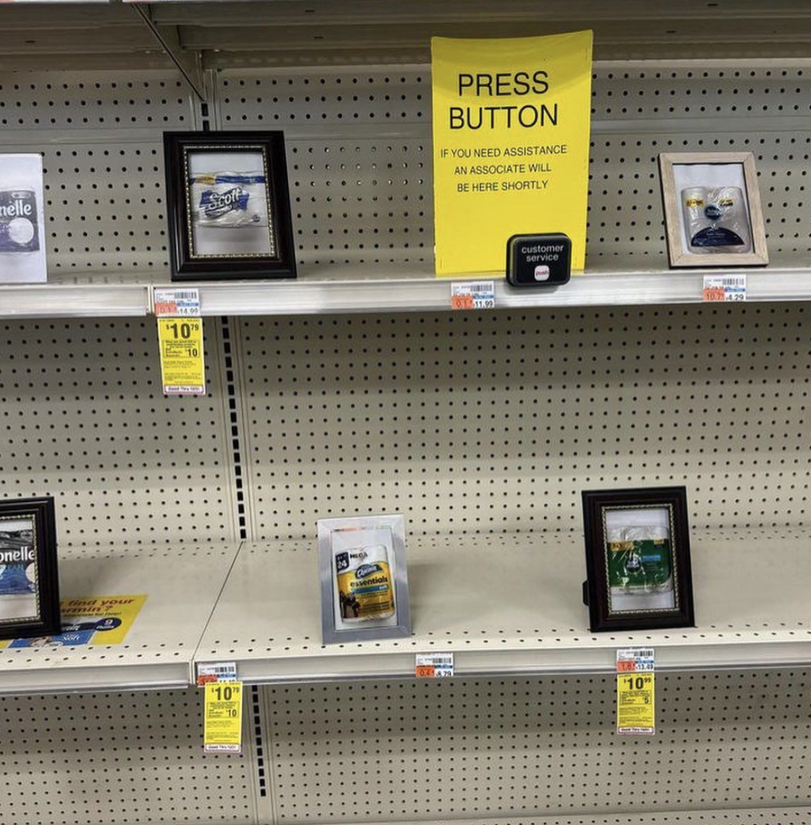 Це пов'язано з масовими крадіжками. Згідно з фотографіями, які з'явилися на X, зображення в рамках таких предметів, як туалетний папір та кухонні рушники, стоять замість реальних.
